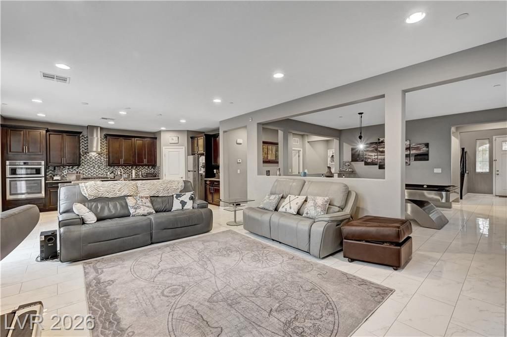 Rare Find in a Gated Henderson Enclave! Tucked into an exclusive 31-home gated community next to a neighborhood park (no neighbors on one side!), this 5-bed, 3-bath stunner offers 3,055 sf of upgraded living in top-rated Coronado HS zoning. Step inside to zero carpet ? gorgeous marble tile and wood laminate throughout. The chef's kitchen shines with granite counters, large island, walk-in pantry, gourmet stove with stainless hood, and built-in oven. Downstairs bedroom with ensuite is perfect for guests or in-laws. Upstairs features a spacious loft, oversized primary suite with garden tub, separate shower, dual sinks, and huge walk-in closet. Enjoy a private courtyard entry, paved with low-maintenance desert landscaping, city/mountain views, epoxy-floor garage, and tankless water heater. Close to schools, shopping, dining & the 215. Move-in ready ? won't last!
